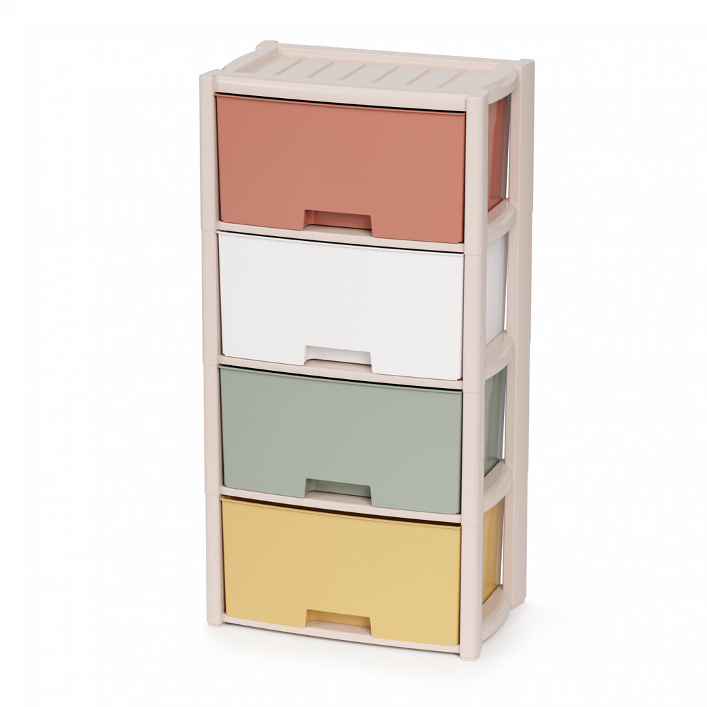 Комод произведен из высококачественного и безопасного полипропилена. Особую прочность комоду придает его цельная конструкция перегородок. Комод имеет выдвижные и достаточно вместимые ящики. На крышке и перегородках предусмотрены ограничители, благодаря которым ящик не будет вылетать при открывании. Такой комод станет отличным решением для организации хранения практически в любой комнате вашей квартиры или дома.