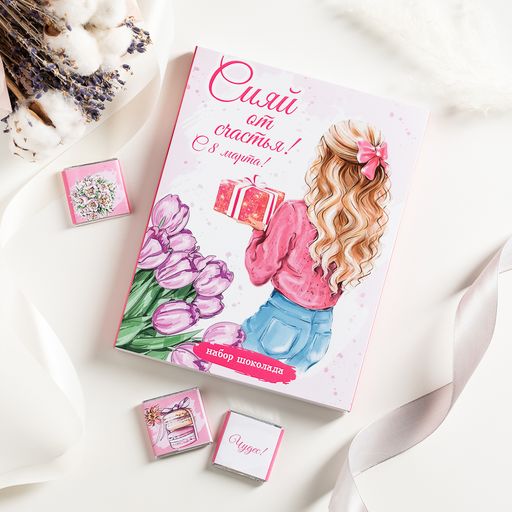 • Набор 12 шоколадок "Сияй от счастья! С 8 марта! (девушка с подарком)"