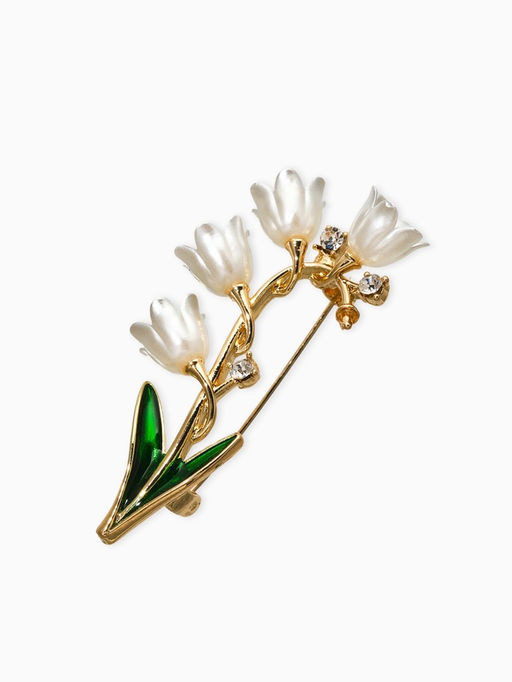 • Брошь "Цветы Ландышей", цвет бело-зелёный в золоте