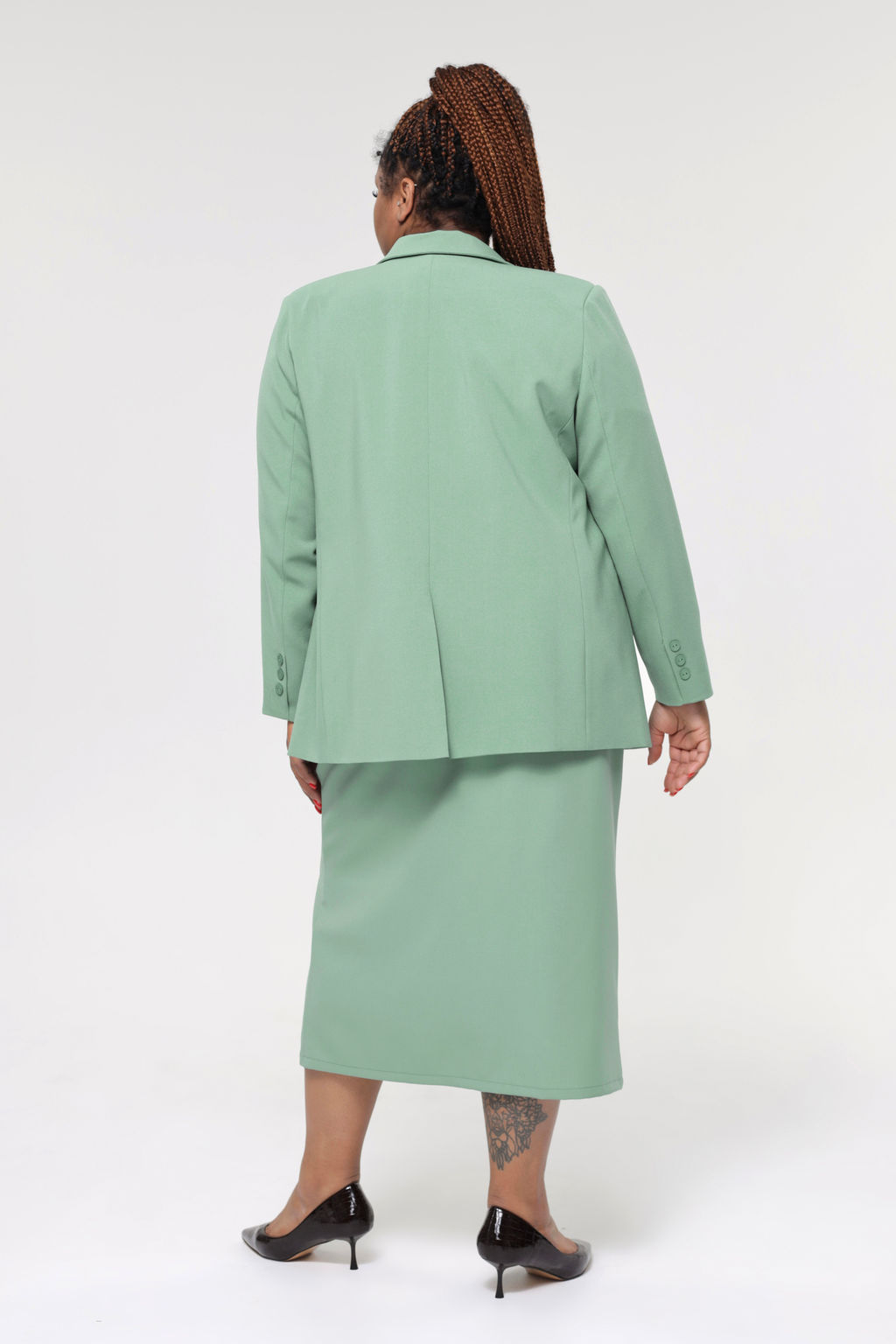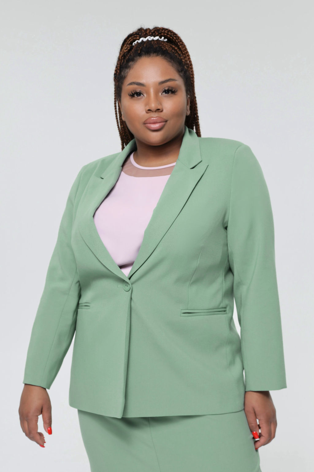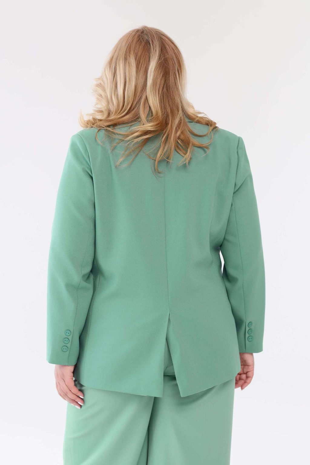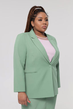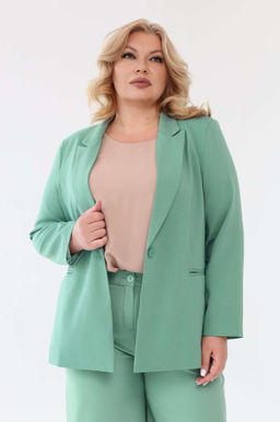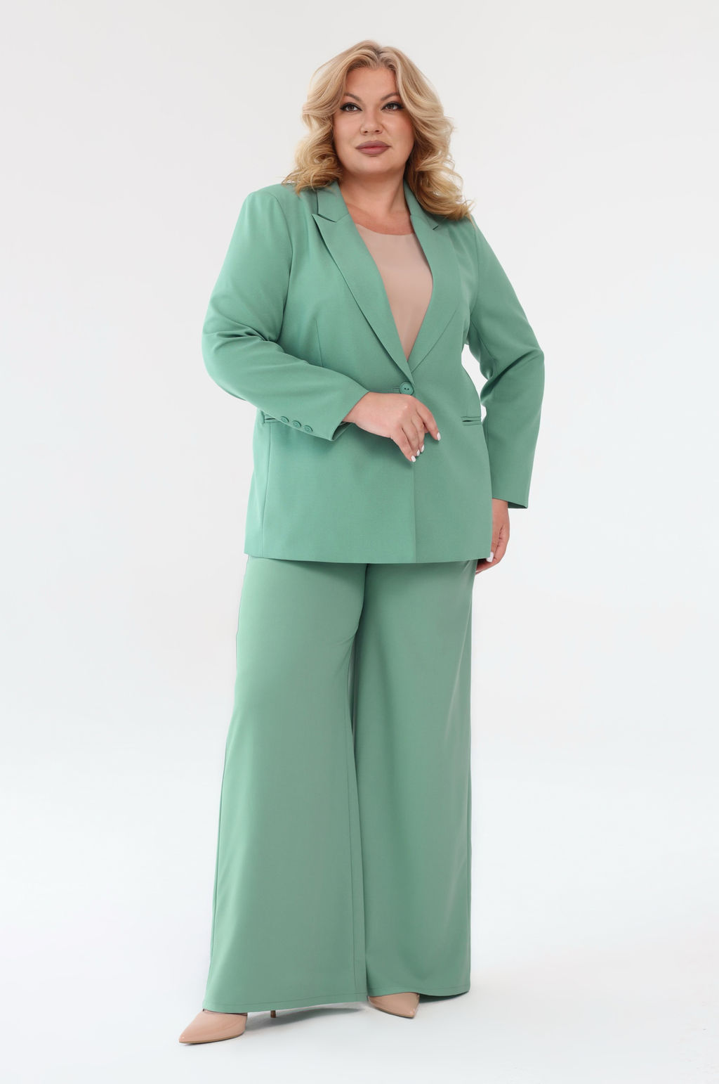 Элегантный жакет прямого кроя из мягкого материала на подкладке. V-образный вырез оформлен классическим отложным воротником с лацканами. Имеет рукава полной длины. Аккуратные подплечники зрительно вытягивают силуэт и делают бедра визуально у?же. Вытачки на груди способствуют оптимальной посадке по фигуре. Модель застёгивается на оригинальную пуговку, что добавляет модели практичности и оригинальности. По бокам декоративные прорезные карманы Этот модный жакет станет идеальным дополнением для повседневного стильного образа.­