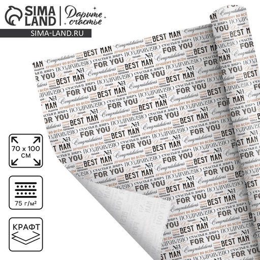 • Цена за 2 шт. Бумага упаковочная крафтовая «Лучшему во всём»,1 лист, 70 х 100 см