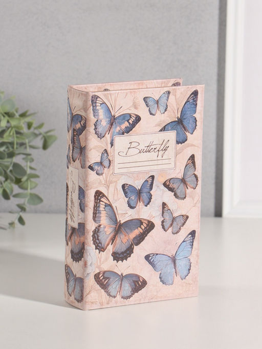 • Шкатулка книга - сейф «Синие бабочки» дерево, искусственная кожа, 21×13×5 см