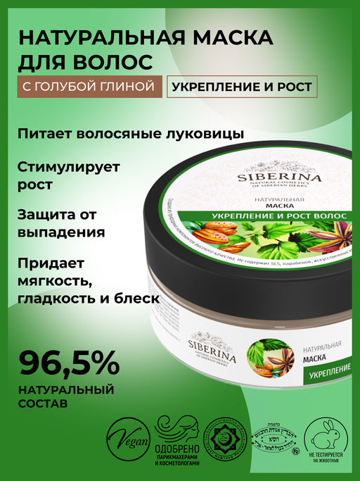 Описание товара НАТУРАЛЬНАЯ МАСКА "УКРЕПЛЕНИЕ И РОСТ ВОЛОС" С ГОЛУБОЙ ГЛИНОЙ