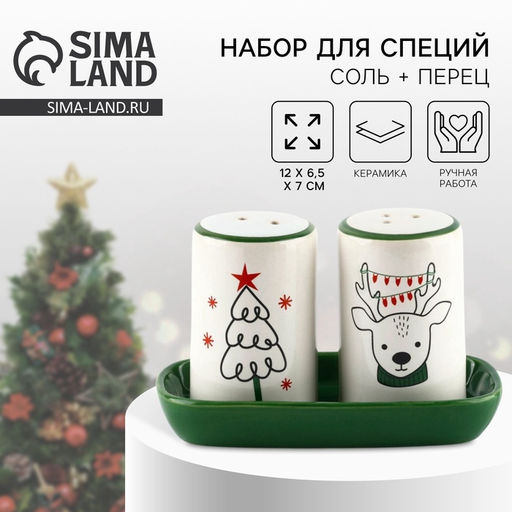 Солонка и перечница «Новогодний олень», 12×6.5×7 см, ручная работа
