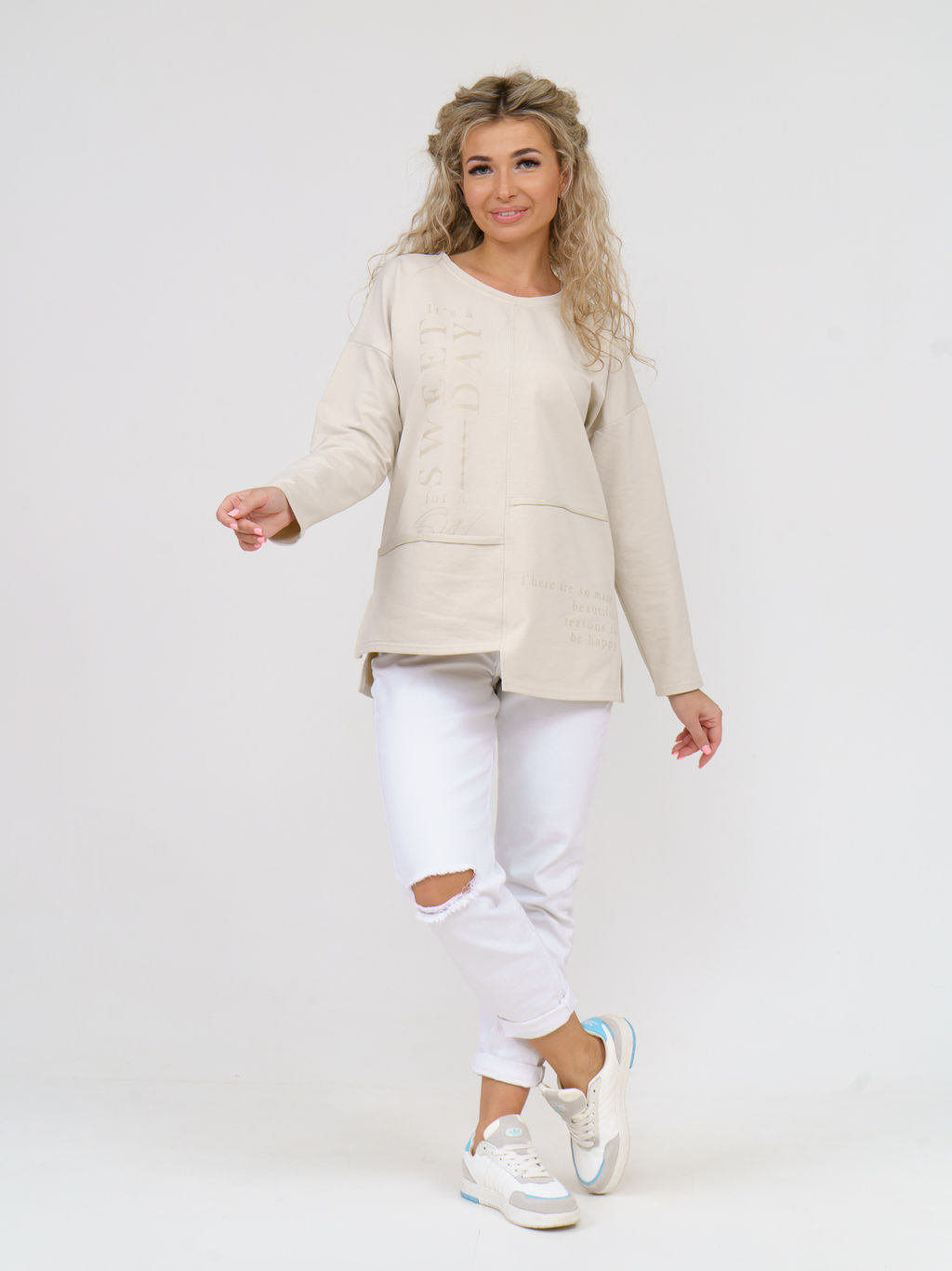Обратите внимание: фото изделия сделано при искусственном освещении в студии, вживую - цвета могут немного отличаться. Туника удлиненная женская из мягкого трикотажного полотна футер. Модель прямого силуэта, свободного покроя, длина изделия чуть ниже уровня бедра. Полочка с ассиметричным низом. По горловине обработана бейка. Полочка декорирована ультрамодным принтом . С левой стороны по линии подреза обработан карман. Рубашка женская  незаменимая стильная вещь для каждого гардероба. Платье подойдет любому типу фигуры, а также дополнит образ с брюками и юбками. Отлично подойдет на прогулку, как одежда для дома и одежда для улицы, в офис, для отдыха, в подарок, для полных и худых. Классическая вещь незаменимая для женского базового гардероба. Домашняя удлиненная кофта по низкой цене станет прекрасным подарком маме, сестре, подруге на Новый год и на день рождения. При заказе, обязательно обращайте внимание на представленную в карточке товара размерную сетку. Праздничная блузка станет любимым предметом гардероба любой модницы. Одежда для дома из мягкой хлопковой ткани. Туника женская больших размеров нарядная подойдет беременным, кормящим. Успей купить со скидкой!