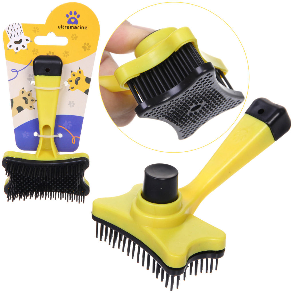 Цена за 3 шт. Расческа - пуходерка самоочищающаяся для собак и кошек "Пушок", цвет желтый, 13см (блистер)