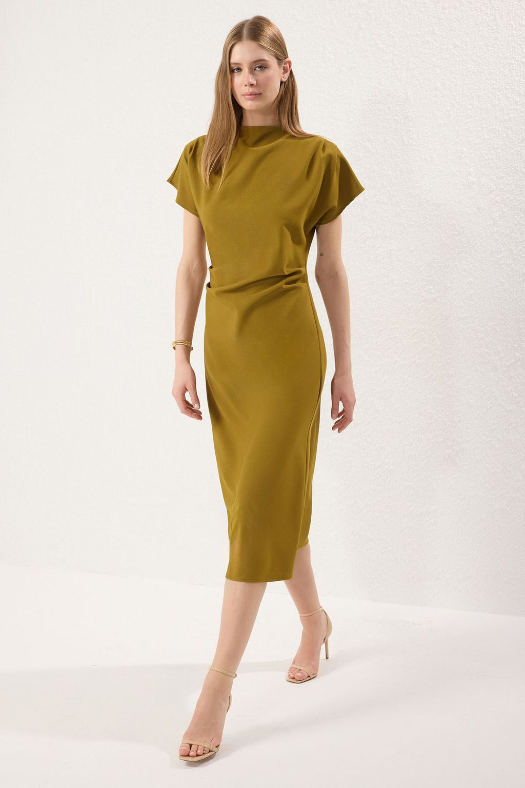 Yag Yesil A Kesim Degaje Yaka Midi Dokuma Elbise TWOAW25EL00393