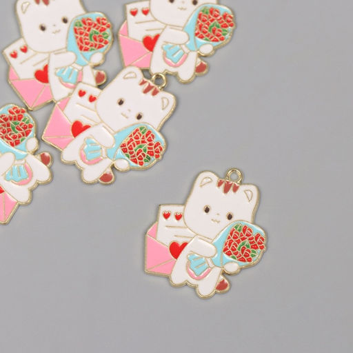 Цена за 5 шт. Декор для творчества металл, эмаль «Котик с букетом», 2.8×2.5 см