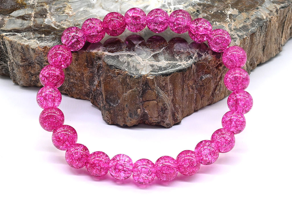 Браслет из сахарного кварца шарик 8мм цвет фуксия, 16см