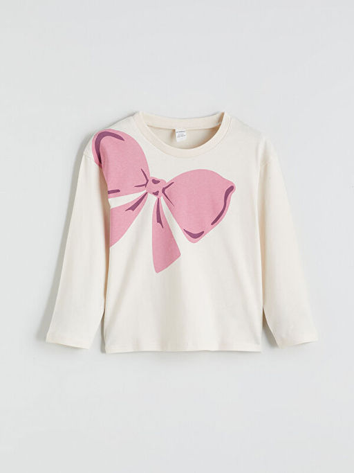 Bisiklet Yaka Fiyonk Bask?l? K?z ?ocuk Ti??rt