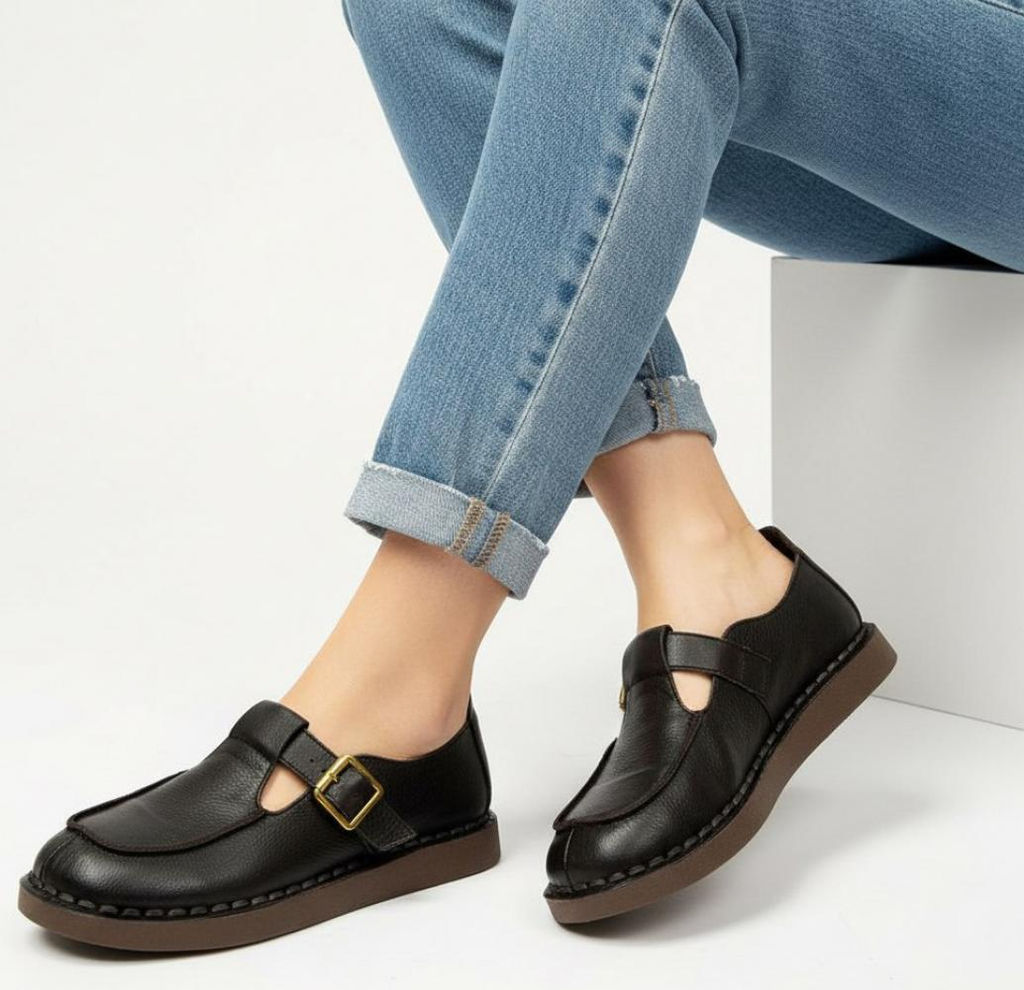 Мягкая кожа, мягкая подошва и запятник.
