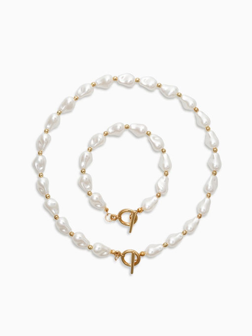 • Набор 2 предмета: бусы, браслет «Жемчуг барочный. Капля», 40/18 см, белый в золоте