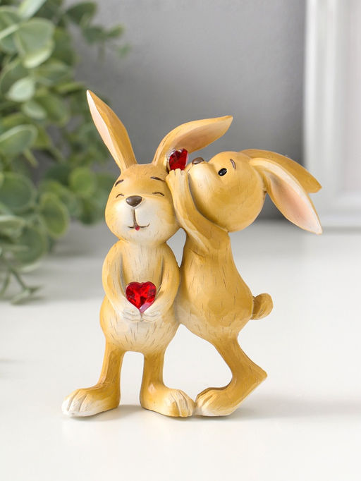 • Сувенир полистоун "Зайчики с сердечком - хочешь расскажу секрет?" 12,5 см