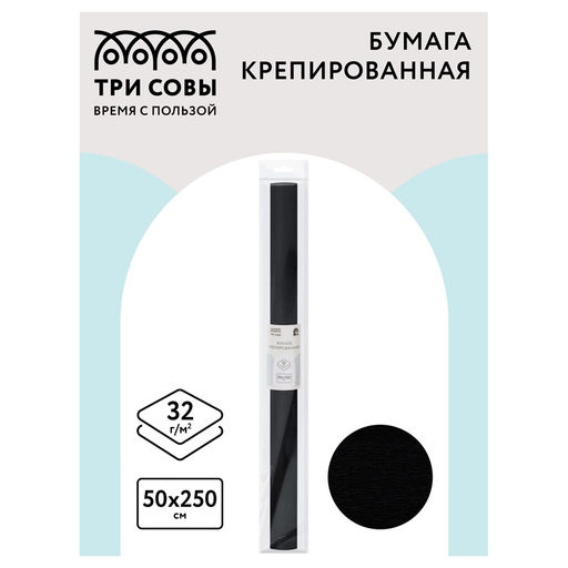 • Бумага крепированная черная 32г/м2 (CR_43993, ТРИ СОВЫ) 50*250см, в пакете