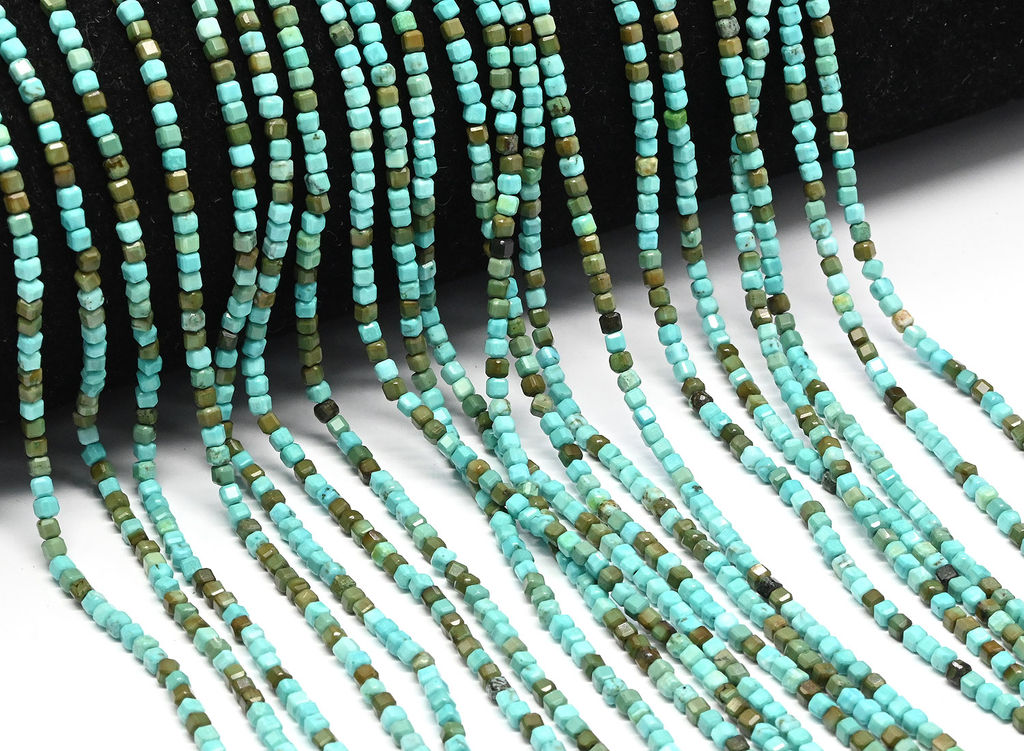 • Бусины из бирюзы кубик граненый 2мм, 38см, 170 бусин Радуга камня