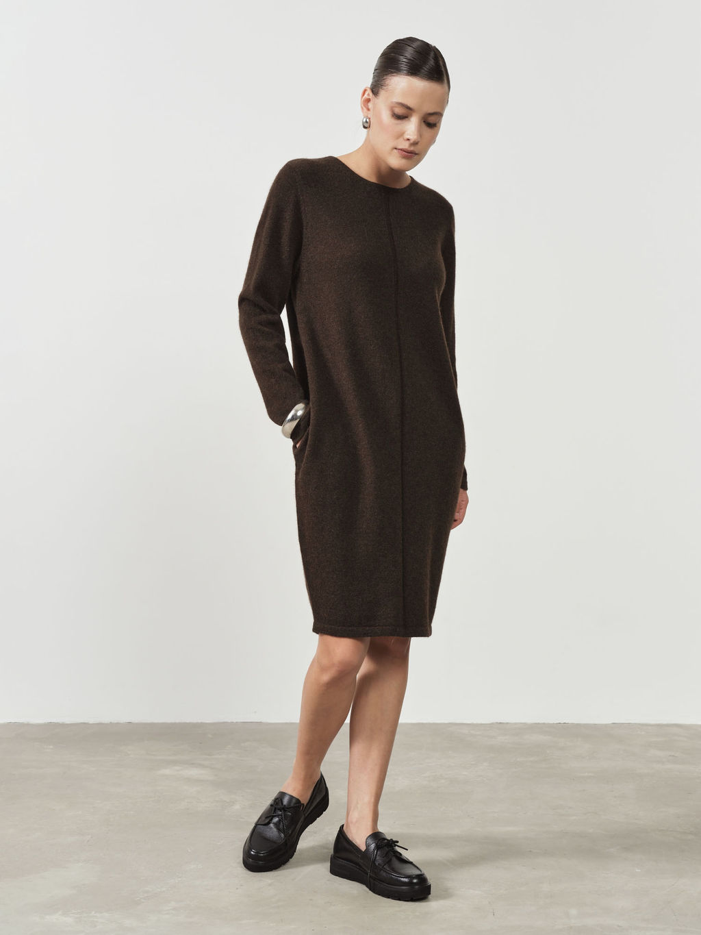 Темно-коричневое платье из пуха яка прямого кроя это воплощение комфорта и элегантности. Пух яка, из которого изготовлено платье, известен своими теплыми и мягкими свойствами, что делает его идеальным для холодных сезонов. Прямой крой подчеркивает фигуру, создавая стильный и лаконичный образ, а темно-коричневый цвет добавляет изделию универсальности и роскоши.