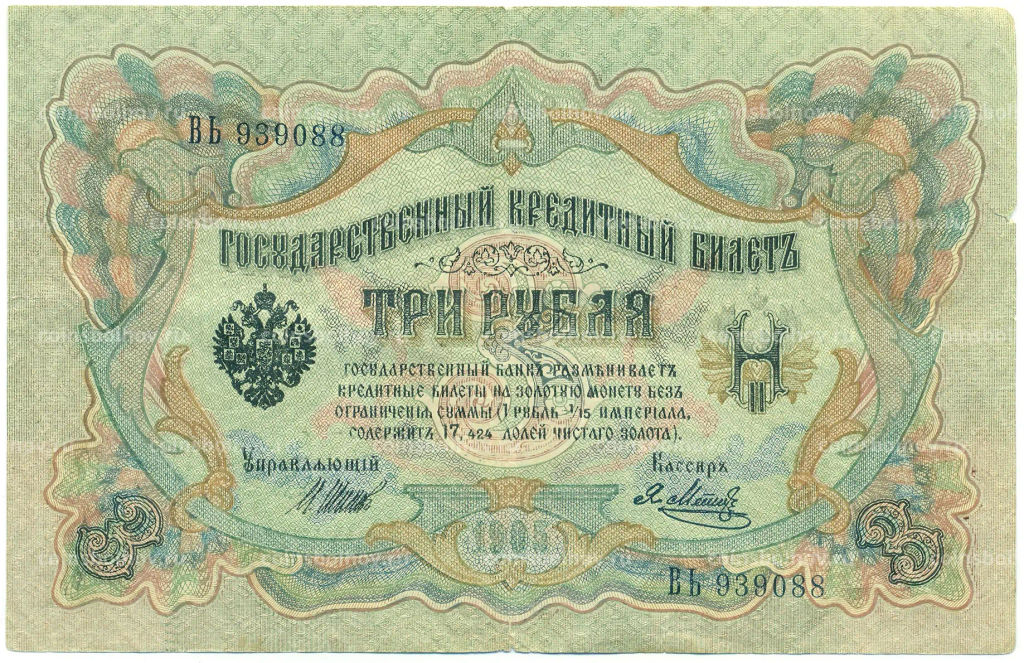 Банкнота 3 рубля 1905 года Шипов / Метц
