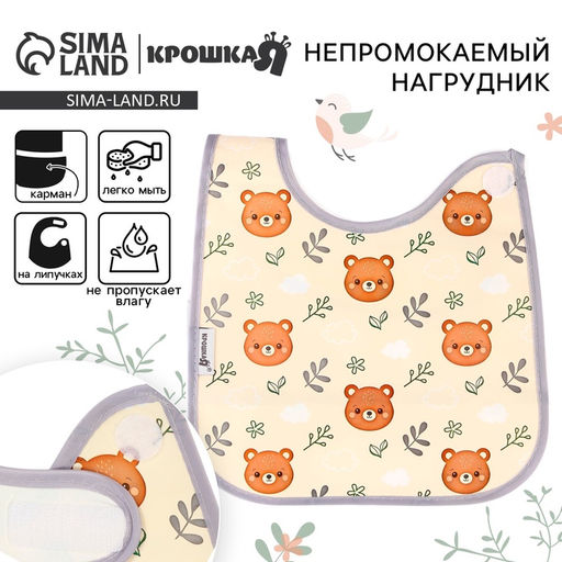 • Нагрудник непромокаемый Крошка Я «Лесная сказка», на липучке, с карманом