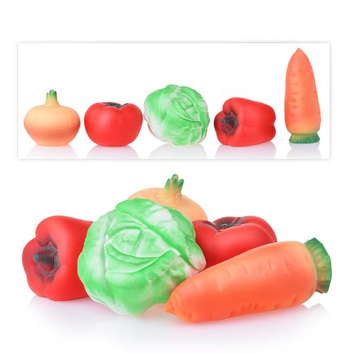 Набор овощей для супа это отличный подарок маленьким детям. Игрушки развивают мышление малыша, с ними можно изучать виды продуктов, яркие цвета и названия. Миниатюрная капуста, морковь, реалистичный лук, перчик и помидор - одни из самых популярных овощей в мире. Малышам будет интересно детально изучать их строение, фигурки выполнены рельефно и удобно помещаются в маленькой ручке. Детям постарше наборы будут интересны для постановки бытовых сюжетных игр. Игрушки выполнены из высококачественного ПВХ-пластизоля и приятны на ощупь. Они не боятся воды, подойдут для купания в ванной. Размеры игрушек Морковь 47х46х121 мм, Капуста 89х88х64 мм, Лук 70х68х66 мм, Перец 80х63х60 мм, Помидор: 73х73х53 мм.