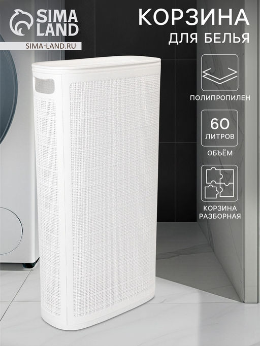 Плетёная корзина для белья с крышкой «Лён», 60 л, 43×20×80 см, белая 5 32 отзыва 0