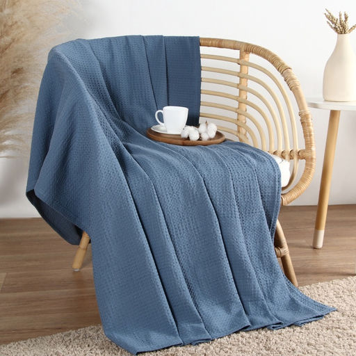 • Плед вафельный «Этель» Waffle, 180×240 см, вафля 195 г/м², синий