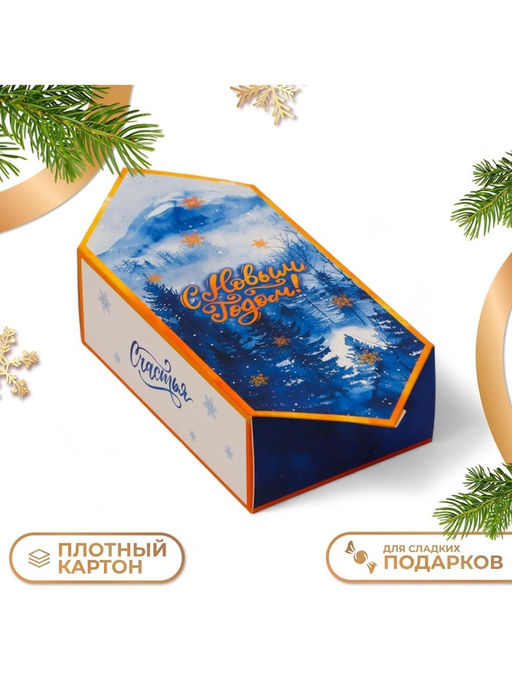 Складная новогодняя коробка в виде конфеты — это оригинальная и праздничная упаковка для подарков, которая подчеркнёт волшебную атмосферу зимних праздников.Коробка выполнена в форме конфеты и оснащена удобным механизмом складывания, что позволяет легко собрать и разобрать её при необходимости.Она идеально подойдёт для упаковки сладостей, небольших подарков, сувениров и аксессуаров. Яркий и стильный дизайн создаст настроение праздника, а прочный материал гарантирует сохранность содержимого. Такая коробка станет не только практичной упаковкой, но и эффектным элементом декора, привлекая внимание и даря радость получателям. Форма: Прямоугольная. Форма: Фигурная. Плотность, г/м²: 350. Длина, см: 14.6. Ширина, см: 9.3. Высота, см: 5.3. Допустимый вес вложения, г: 200. Тематика: Новогодняя. Тематика: Рождественская. Символ года: Нет. Тематика праздника: Новый год. Вид: Фигурные. Вид: Коробки-конфеты. Вид: Прямоугольные. Вид: Складные коробки. Размер: Мини (до 10 см). Окошко: Нет. Крышка-дно: Нет. Бесплатная доставка: Да. Наша разработка: Да.