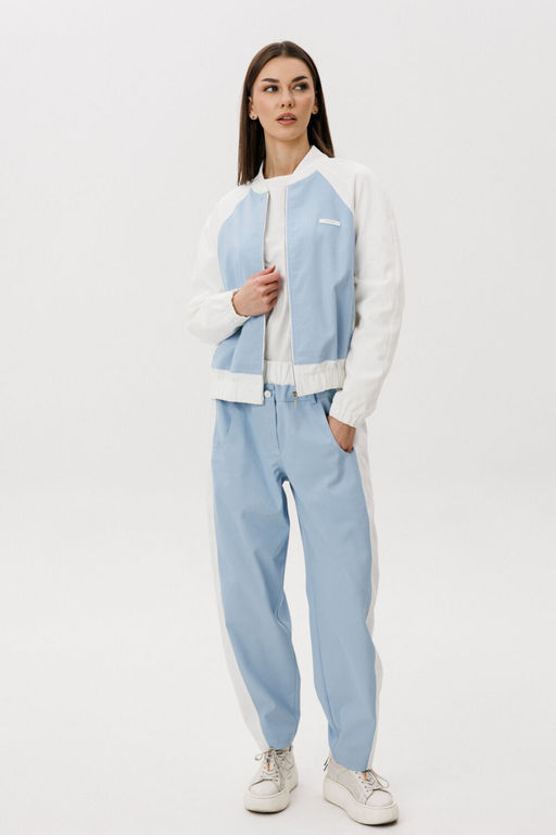 Состав: ПЭ-27%; Хлопок-70%; Эластан-3%; Эффектный брючный комплект в нежном оттенке Тиффани современное прочтение casual-стиля с акцентом на комфорт и актуальный силуэт. Свободный крой и мягкие линии создают расслабленный, но продуманный образ для динамичного городского ритма. Детали модели: Широкие брюки с высокой посадкой и мягкой линией талии Объемный силуэт, визуально вытягивающий фигуру Легкая куртка на молнии с контрастными белыми рукавами Минималистичная отделка и функциональные карманы Комплект выполнен из качественного хлопчатобумажного полотна. Натуральная ткань обеспечивает воздухопроницаемость, комфорт и приятные тактильные ощущения. Материал держит форму, при этом остается легким и удобным в носке. Широкие брюки придают образу трендовую выразительность и свободу движений, а свежий голубой оттенок добавляет легкости и визуальной чистоты. Комплект легко комбинируется с базовыми футболками, топами и кедами, создавая стильные повседневные образы. Преимущества: Натуральный хлопковый состав Актуальный oversize-силуэт Комфортная посадка Универсальность для повседневного гардероба Брючный комплект ""Tiffany"" с широкими брюками это гармония стиля, удобства и актуальных трендов. Идеальный выбор для тех, кто ценит свободу и элегантность в деталях. -- Характеристики -- Состав: ПЭ-27%; Хлопок-70%; Эластан-3%; Сезон: Весна Рост: 164 Страна бренда: Беларусь