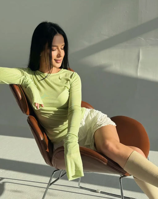 • K12732 Лонгслив OVER SIZE прозрачный ЛАЙМ