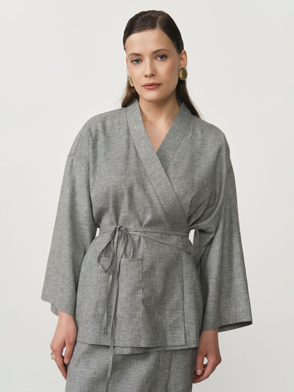 Артикул: Жакет-кимоно льняной 42600 темно-серый