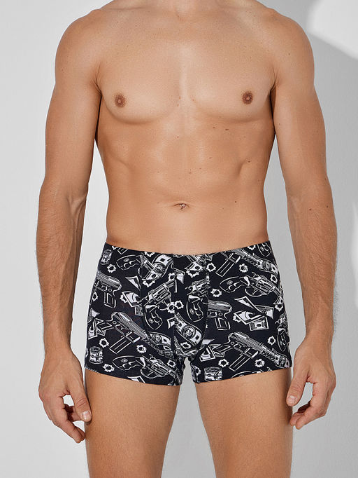 Черные трусы-боксеры мужские с узором это эталон комфорта и качества. Модель выполнена из мягкого дышащего материала на основе хлопка с добавлением эластана, что обеспечивает идеальное облегание и свободу движений. Эластичный широкий пояс мягко сидит на талии, не оставляя следов, а плоские швы исключают натирание.
