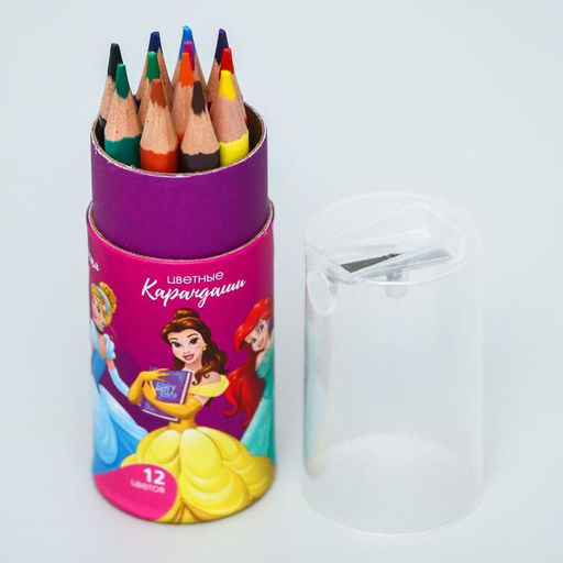 • Цветные карандаши, 12 цветов, в тубусе, «Принцессы»
