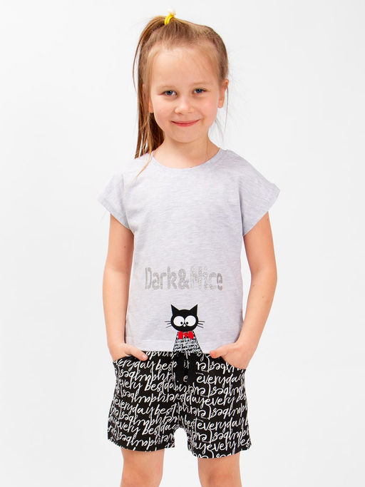 Цвет: серый меланж Бренд: Bonito Пол: Девочки Производитель: Узбекистан Сезон: лето Тип ткани: Кулирка Категория: Костюм летний Тип рукава: Короткий Тип карманов: С отрезным бочком Комплектация: 1 футболка, 1 шорты Уход за вещью: Максимальная температура стирки 40С Страна бренда: Узбекистан Состав материала: 95% хлопок, 5% эластан Замеры модели* * рост указан приблизительно, ориентируйтесь на замеры * Размер 92 (рост 86-92 см) длина футболки 32 см, обхват груди 50 см, длина шорт 24 см, обхват талии 42 см. * Размер 98 (рост 92-98 см) длина футболки 34 см, обхват груди 52 см, длина шорт 26 см, обхват талии 44 см. * Размер 104 (рост 98-104 см) длина футболки 36 см, обхват груди 56 см, длина шорт 26 см, обхват талии 46 см. * Размер 110 (рост 104-110 см) длина футболки 38 см, обхват груди 58 см, длина шорт 28 см, обхват талии 48 см. * Размер 116 (рост 110-116 см) длина футболки 40 см, обхват груди 60 см, длина шорт 28 см, обхват талии 50 см. Костюм для девочки Bonito. Трендовая модель состоит из футболки с глиттером и пришивными лапками снизу и шорт на широкой резинке с внутренними карманами. Материал ткани хлопковое полотно разных цветов с веселым принтом. Прекрасный комплект для лета.