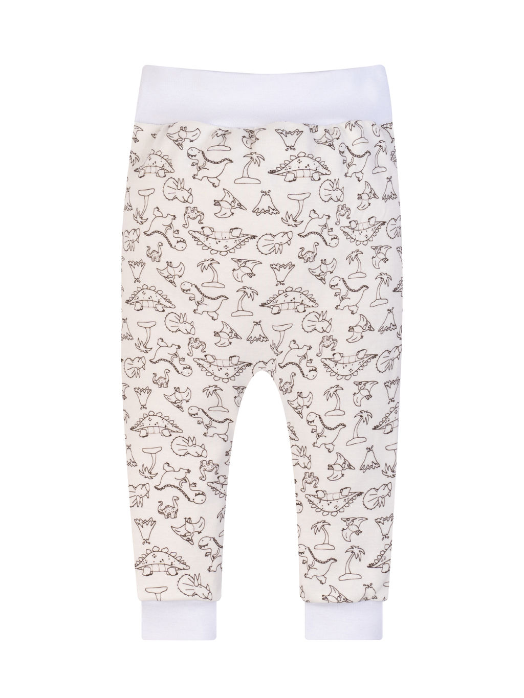 Нежный к телу, дышащий, эластичный трикотаж. Удобные ползунки с открытой ножкой. Пояс из эластичного мягкого трикотажа (на еврорезинке). Манжеты на штанинах. Выпускаются из трикотажа молочного цвета с рисунком динозавры.