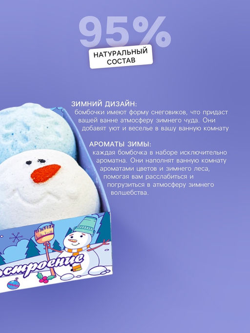 Новогодний набор бомбочек для ванн «снеговичок», 480 г