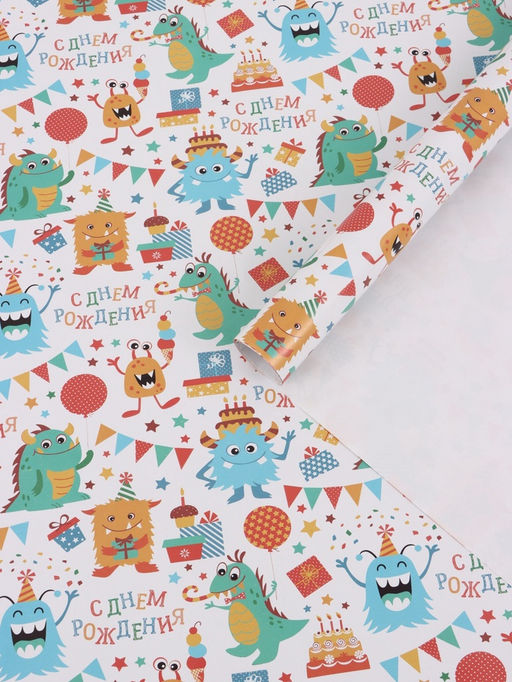 • Цена за 2 шт. Бумага упаковочная глянцевая «Динозаврик», 70×100 см, 1 лист