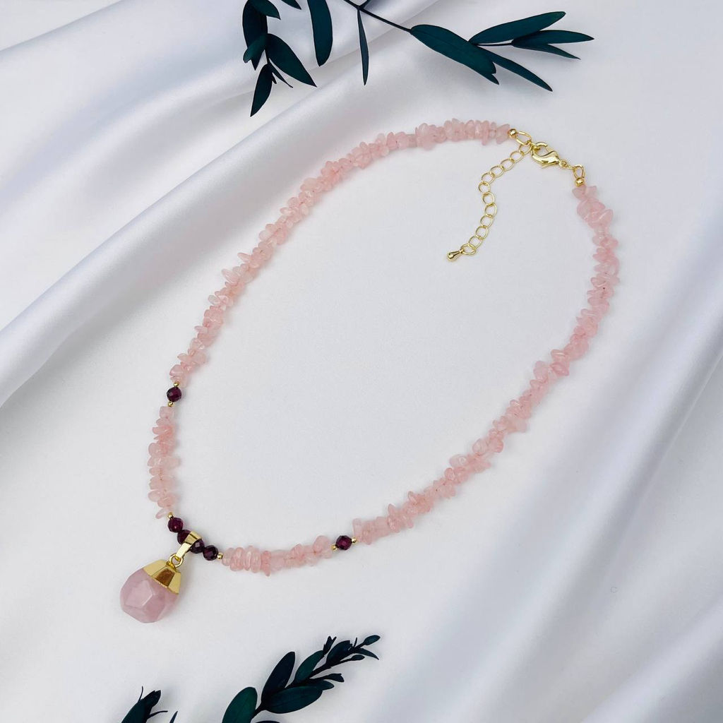 • Колье из Розового кварца и Граната 45 см +