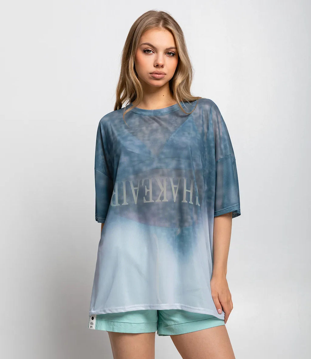 Футболка выполнена из ткани, состоящей на 95% из полиэстера и на 5% из эластана. Модель имеет цвет с оригинальным декоративным принтом на груди в виде стилизованных белых символов. Особое внимание уделено деталям на манжетах рукавов используется белая кружевная отделка, которая придаёт футболке изящность и является интересным контрастным элементом. Крой футболки свободный, с короткими рукавами и классическим круглым вырезом горловины, что обеспечивает удобство и позволяет сочетать её с разными стилями одежды от повседневного до более нарядного. Чтобы вы были уверены в размере, мы представили на странице таблицу. Воспользовавшись ею, вы сможете сами сделать мерки и удостовериться. Предложенная нами цена является приемлемой. Не откажите себе в удовольствии быть элегантной. Рост модели 168 см., 89-63-90.­