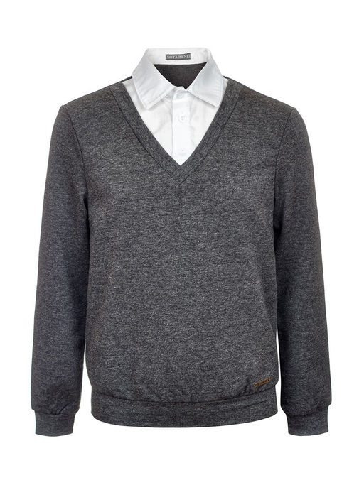 Джемпер-обманка для мальчика из трикотажного полотна и текстиля с длинными втачными