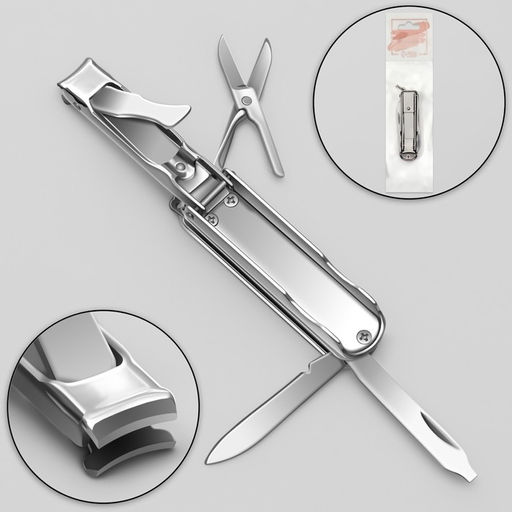 • Кусачки-книпсер маникюрные, 4 в 1, многофункциональные, 6 см, цвет серебристый