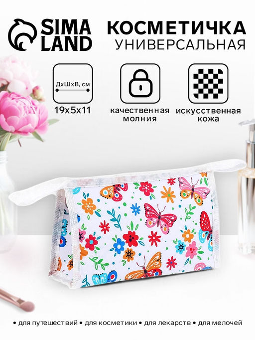 • Цена за 3 шт. Косметичка на молнии, треугольная, маленькая, с принтом, белая/розовая