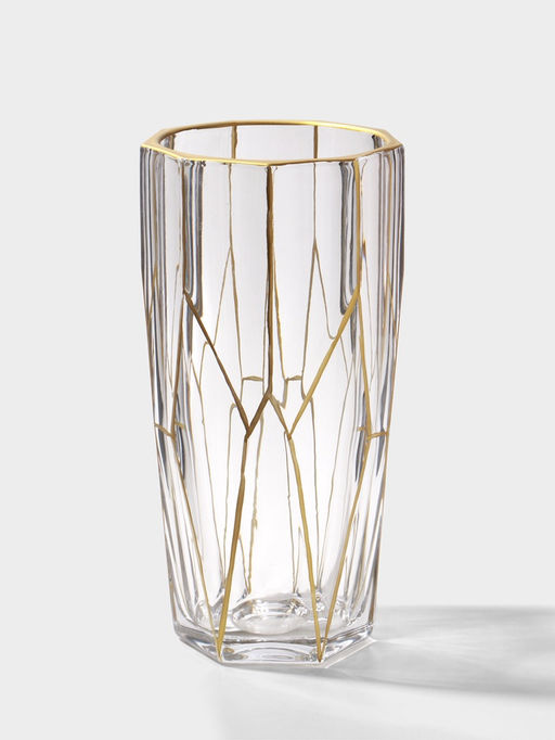 • Ваза стекло настольная "Ронья" 23х11,5 см, прозрачно-золотой