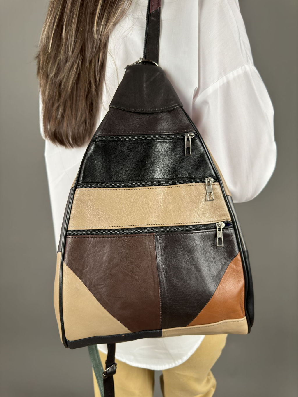 Вместительный рюкзак из натуральной кожи, производства Турция. Оптимальное соотношение цены и качества! Лучшее решение в повседневной жизни. Мягкая прочная кожа, очень легкая, выполнена из лоскутов кожи гладкой, либо комбинированной выделки, в стиле пэчворк. Рюкзак удачно впишется в винтажный, повседневный, классический, либо деловой образ.