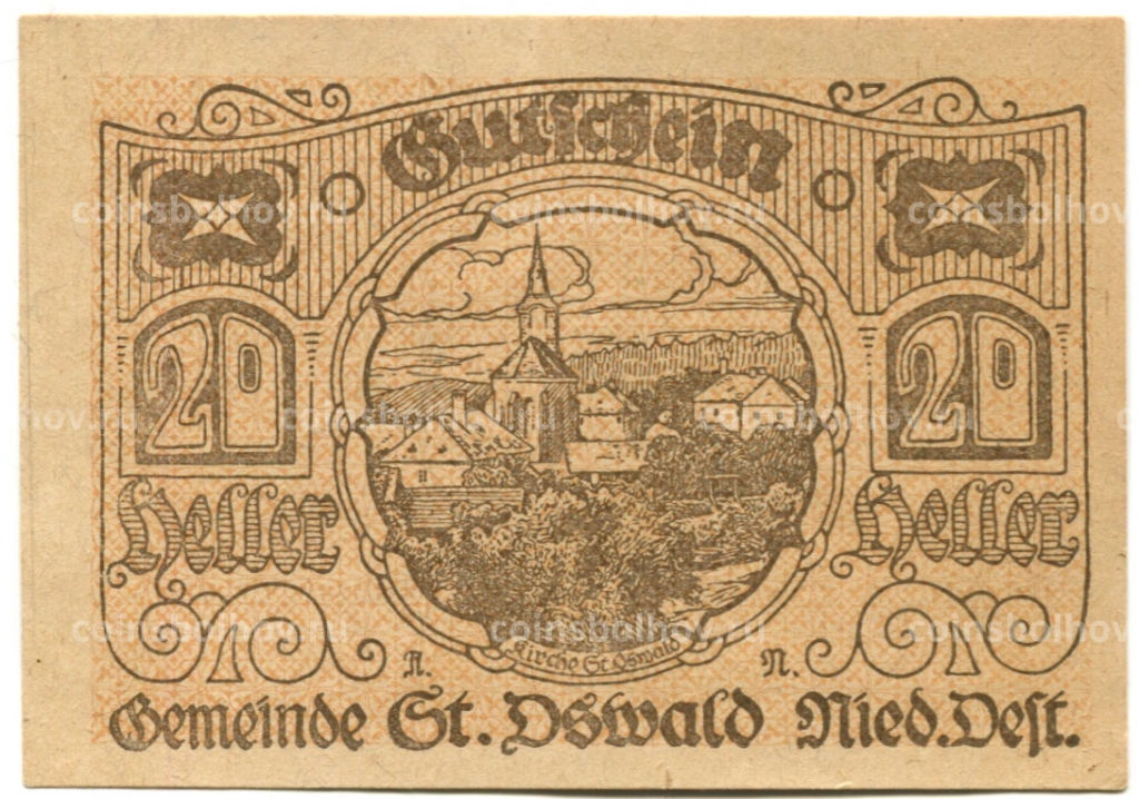 • Банкнота 20 геллеров 1920 года Австрия  Санкт-Освальд (нотгельд)