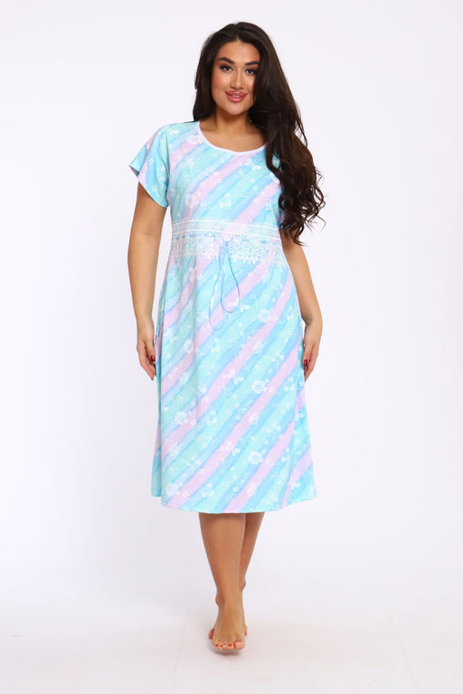 Ночная сорочка свободного кроя со спущенной проймой из 100% хлопка. Длина ниже колена. Изюминка этой уютной сорочки - красивое широкое кружево с лентой, которую можно слегка стянуть под линией груди. Благодаря натуральному составу она обладает прекрасной воздухопроницаемостью, позволяя вашей коже дышать во время сна. Носите с удовольствием!