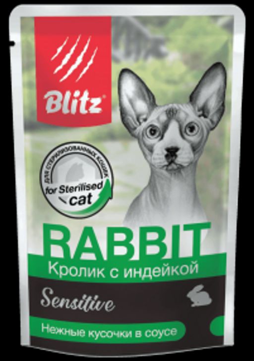 BLITZ пауч д/кош. Кролик с инд. кусочки в соусе 85 г 1/24 BCW09-1-00085