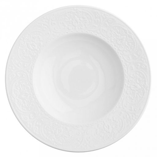 "Русь" Тарелка глубокая фарфоровая д252мм h50мм, 500мл, белый, рельефный декор (Китай)