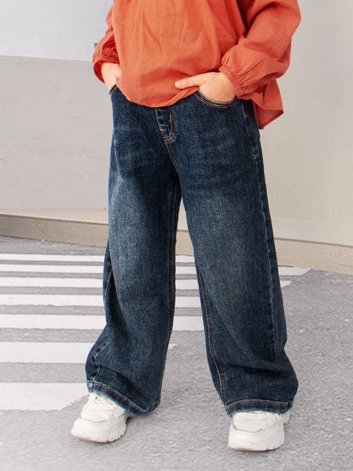 Джинсы для девочки Lovey.CC. Трендовая модель из эластичного денима, на широкой резинке, без молнии и пуговиц. Брючины свободного кроя по всей длине.