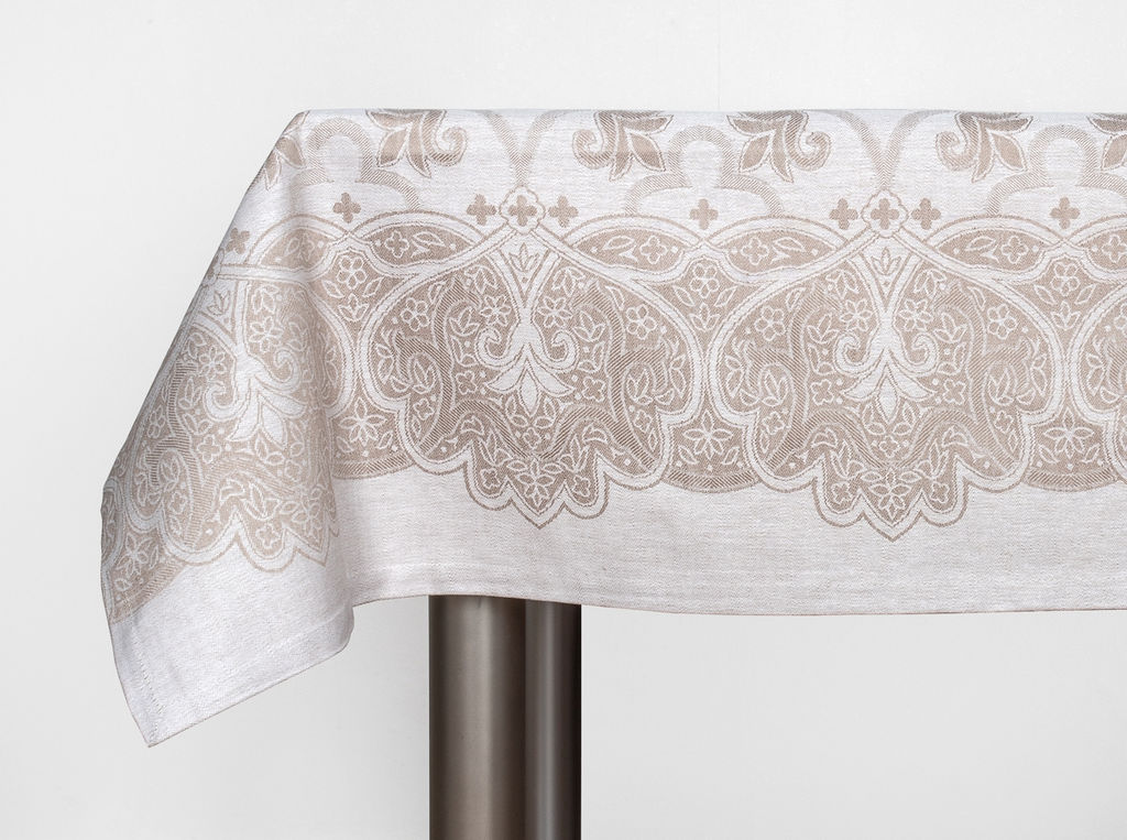Артикул: 24С114-ШР Тип ткани: Полулен Состав: 48% Хлопок, 52% Лен Вид оформления: Жаккардовая Рисунок: 674 - Ольга Цвет: 133 Применение: Кухня - Столовая Производитель: Беларусь Характер рисунка: Абстракция, Орнамент Оттенок цвета: Оттенки кремового, бежевого Упаковка: пакет пвх Тип изделия: Скатерть Размер скатерти, см: 170*300 Плотность, г/м?: 210