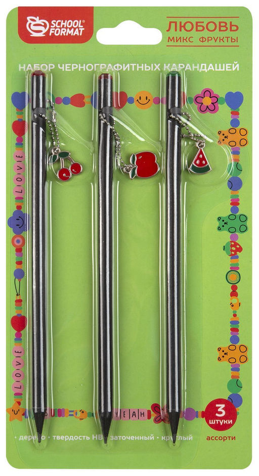 Набор чернографитных карандашей деревянные Schoolformat ЛЮБОВЬ. ФРУКТЫ 3 шт HB заточенные,...