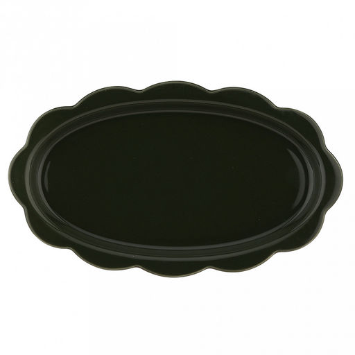 "Садовая фантазия" Блюдо фарфоровое 285х165х25мм, 300мл, овальное, волнистый край, темно-зеленый, в коробке (Китай)
